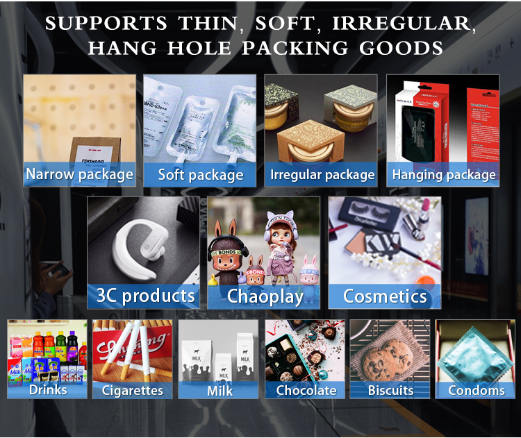 Salable Commodities | Bottle, Can, Box etc. Also irregular and soft package |